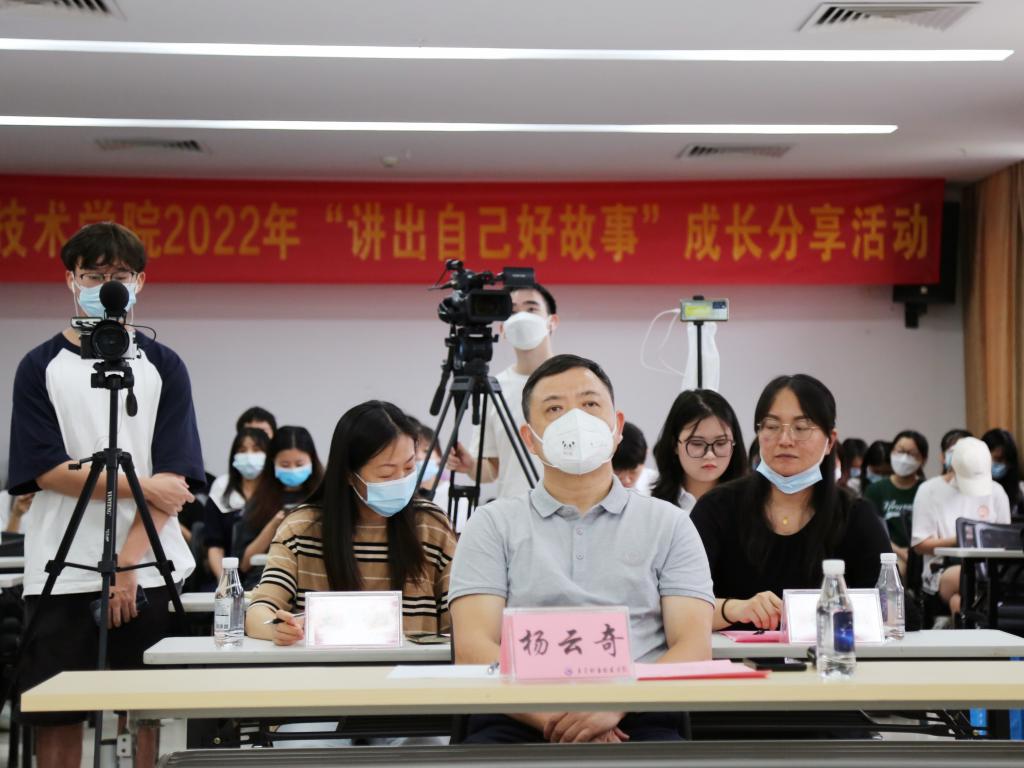为贯彻落实习近平总书记在庆祝中国共产党成立100周年大会上的重要讲话精神,学生处于6月15日在培训楼会议室举办了2022年“讲出自己好故事”成长分享校级展示交流会。校党委委员、副校长杨云奇,学生处及二级学院的相关工作人员出席了活动。
